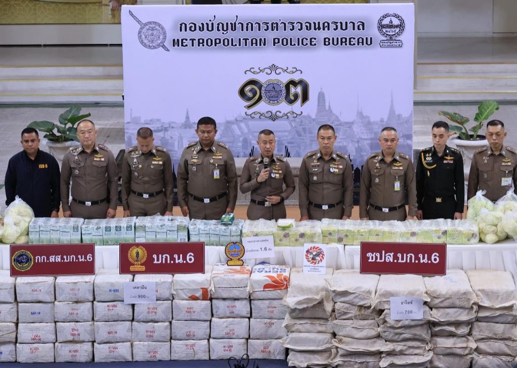 เมื่อวันที่ 6 เมษายน 2569 เวลา 11.00 น. ที่กองบัญชาการตำรวจนครบาล มีการแถลงผลการจับกุมคดียาเสพติดรายใหญ่ โดย “รอง ผบ.ตร.” พล.ต.อ.สำราญ นวลมา ในฐานะผู้อำนวยการศูนย์อำนวยการป้องกันและปราบปรามยาเสพติด สำนักงานตำรวจแห่งชาติ เป็นประธาน พร้อมผู้บริหารระดับสูงของตำรวจและหน่วยงานความมั่นคงเข้าร่วม